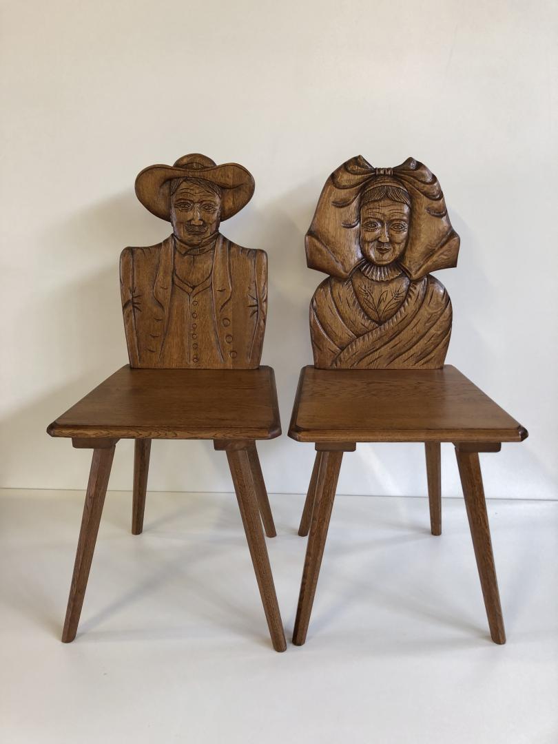 Chaises Alsaciennes Droites - Chêne doré - Dossiers sculptés couple - 401-402